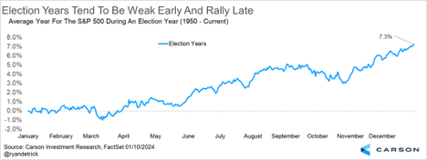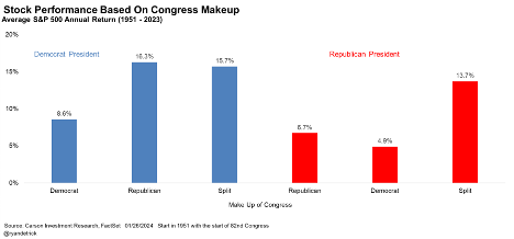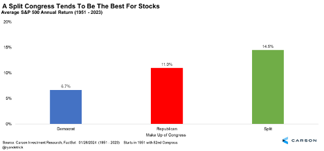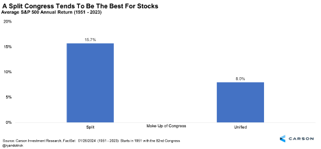 Speaking of which, let’s not forget what Chief Investment Strategist at CFRA and friend of Carson Investment Research Sam Stovall once told us. If the opposite of ‘pro’ is ‘con,’ then the opposite of progress must be Congress! That’s a joke you can use all year now.