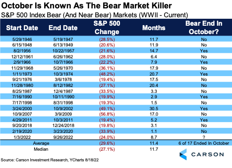 Seventh and lastly, October is known as a bear market killer. Remember, this year was the worst start to a year since 1974 and 2002. Below we show how bear markets tend to bottom in October, and sure enough, both of those vicious bears ended in October. The ‘73/’74 bear ended on October 3, while the tech bubble bear market bottomed on October 9.