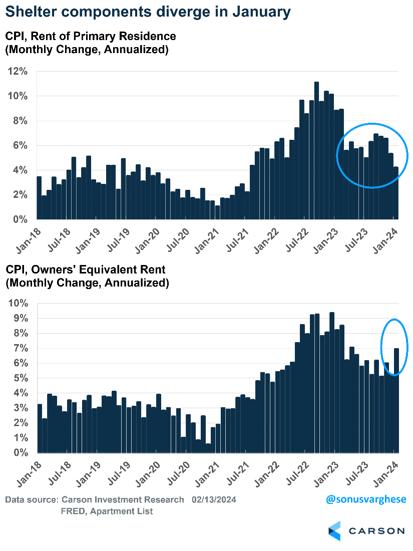 January is a very volatile month for inflation data, more so when inflation is relatively high. This was the case in 2022 and 2023, when we saw relatively large spikes. This year, expectations were all over the place, reflecting the uncertainty. Seasonal adjustments help, but even those don’t remove the larger-than-normal start-of-the-year price spikes.