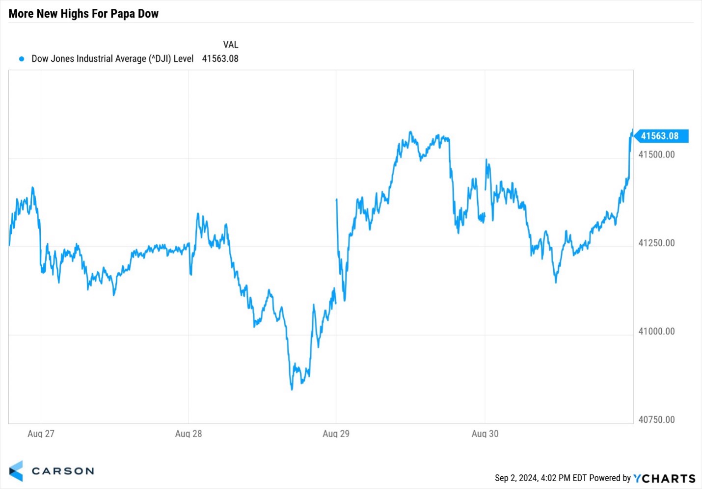 What a month it was for investors. We started off the month with some huge down days over worries centered around the yen carry trade unraveling and a slowing U.S. economy, only to get past those worries almost as quickly and see stocks move right back to new highs (or near new highs). In the end, the S&P 500 was higher by 2.3% for a fourth consecutive monthly gain. As we’ve been noting all summer, election years tend to see summer rallies and that has played out nicely once again in 2024.