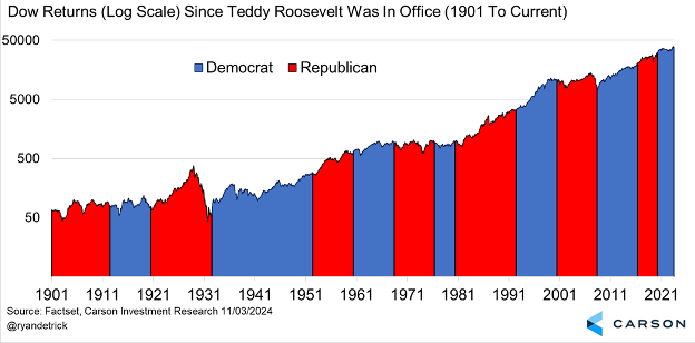 We are aware that this decision likely is about as polarizing as could be for many of you. Half the country is thrilled, while the other half is angry and disappointed. However you feel about the result, as an investor, it’s essential to remember that, historically, who is in the White House has virtually no link to how the stock market will do.
