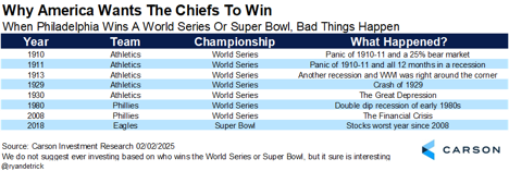 Lastly, did you know that historically bad things happen when a team from Philadelphia wins a World Series or Super Bowl? Of course, this is all in good fun and never invest in this, but given the Eagles just won the Super Bowl, maybe we have yet another reason to worry?