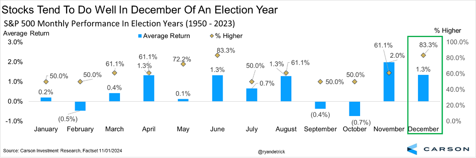 The final month of 2024 is here, and this week we wanted to show why the chance of another strong month to end this record-breaking year is likely. Here are five things to know about December.