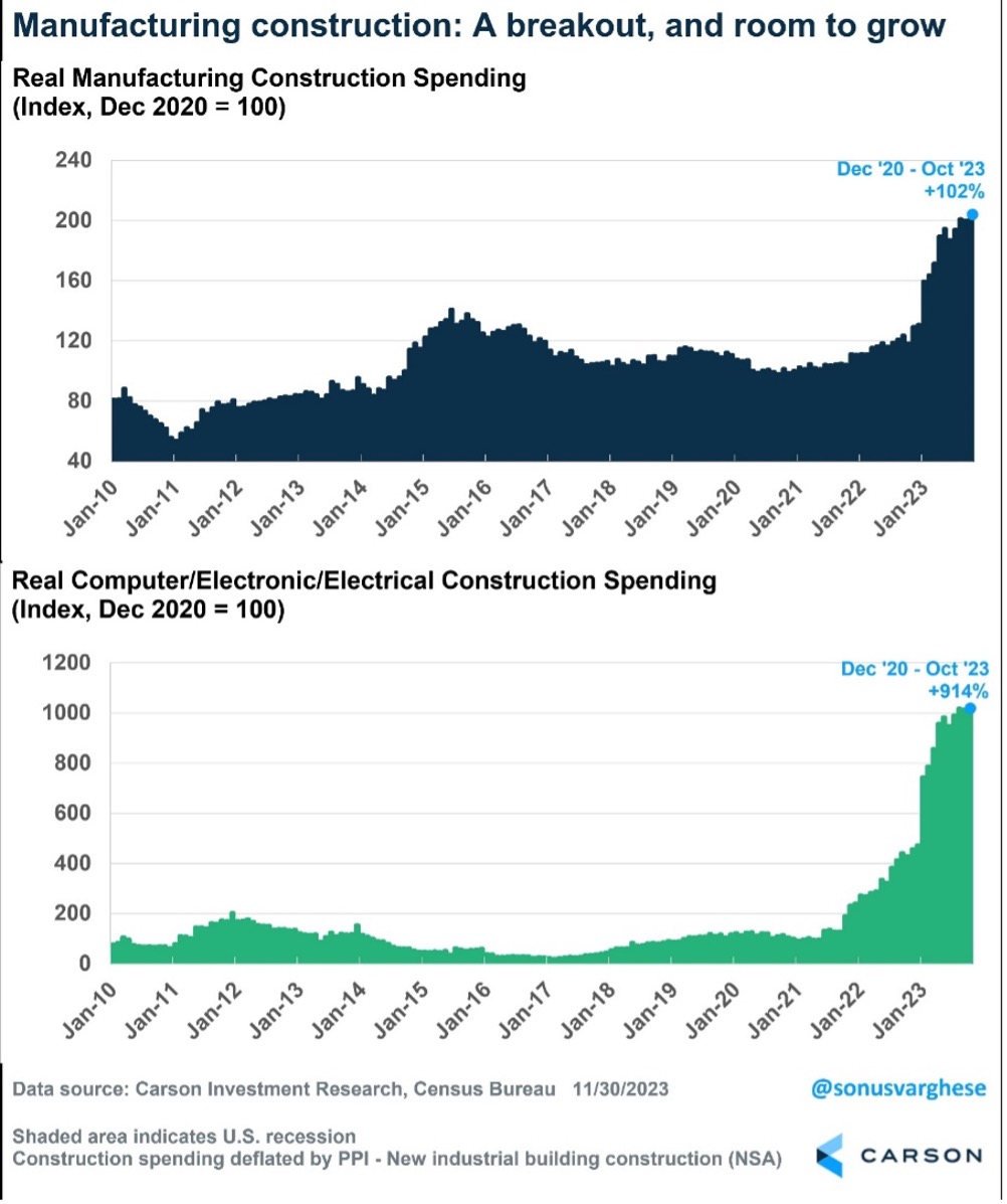 I’ve never seen an economic chart like this, especially one related to factory construction. This is a massively underrated story of what’s happening in the U.S. right now, and it brings together several key themes that center around a renaissance for American manufacturing: