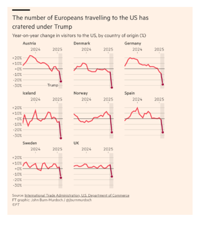 Lastly, Europeans have quickly soured on the US, as those looking to visit us as tourists has outright tanked.
